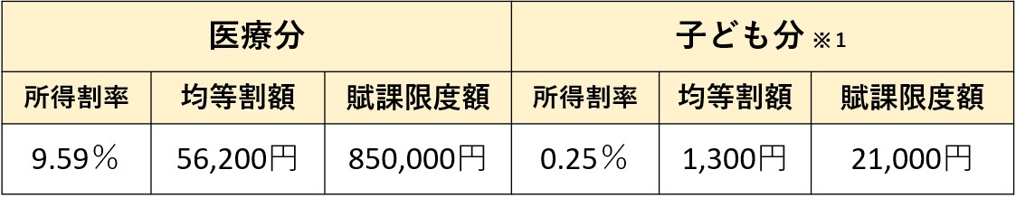 ※1 令和8年度から、子ども・子育て支援金制度が始まり、医療保険の保険料とあわせて徴収します。子ども分保険料は段階的に導入されるため令和9年度についても改定されます。詳しくは下記こども家庭庁ホームページをご覧ください。