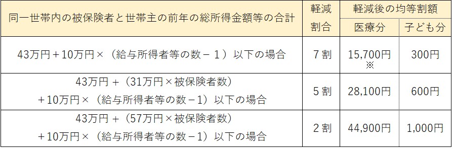 - 所得が少なく、上記2の7割の軽減割合に該当する場合は、そちらの軽減割合が適用されます。